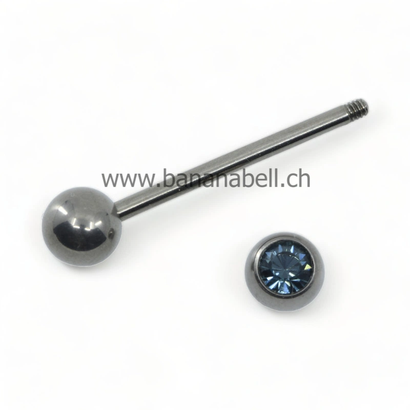 Piercing langue barre titane strass bleu marin