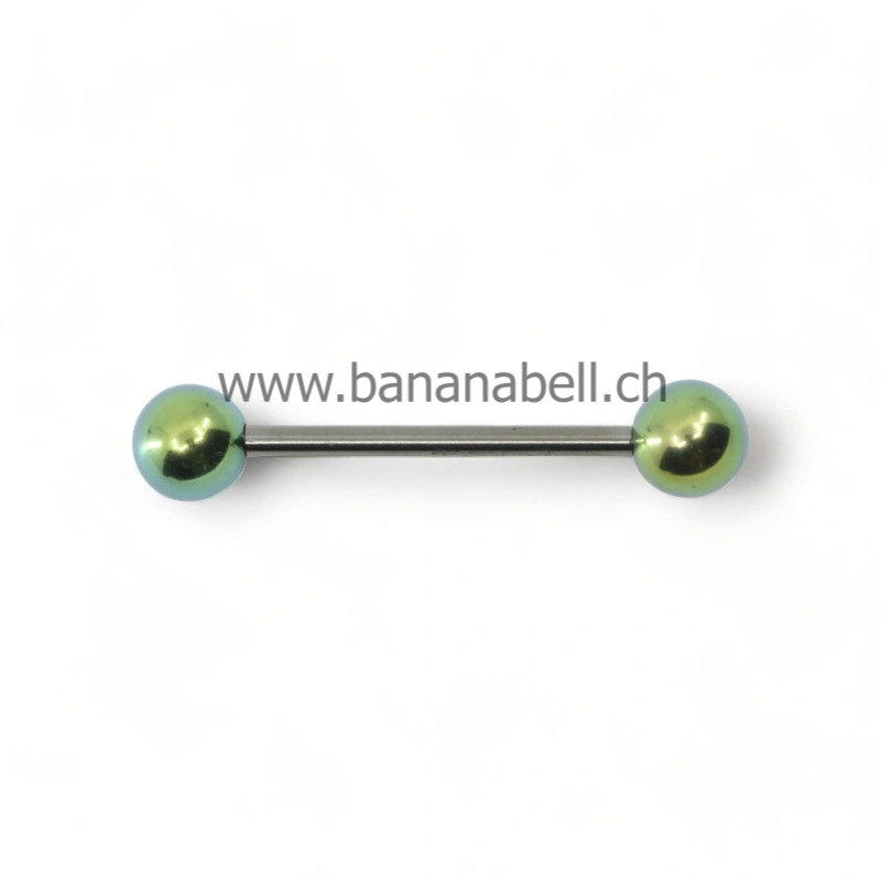 Piercing téton barre titane boules vertes